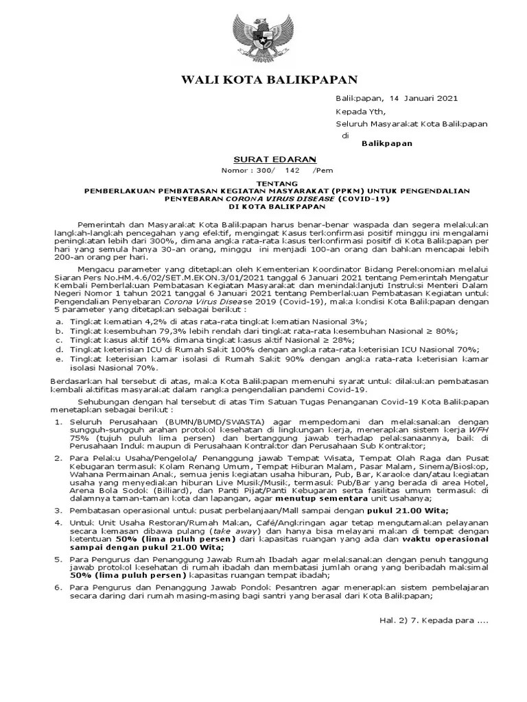 Surat Edaran Walikota Balikpapan Ppkm : Surat Edaran Walikota Balikpapan Nomor 300 2722 Pem / Jenderal sudirman no.1 rt.13, balikpapan telp.